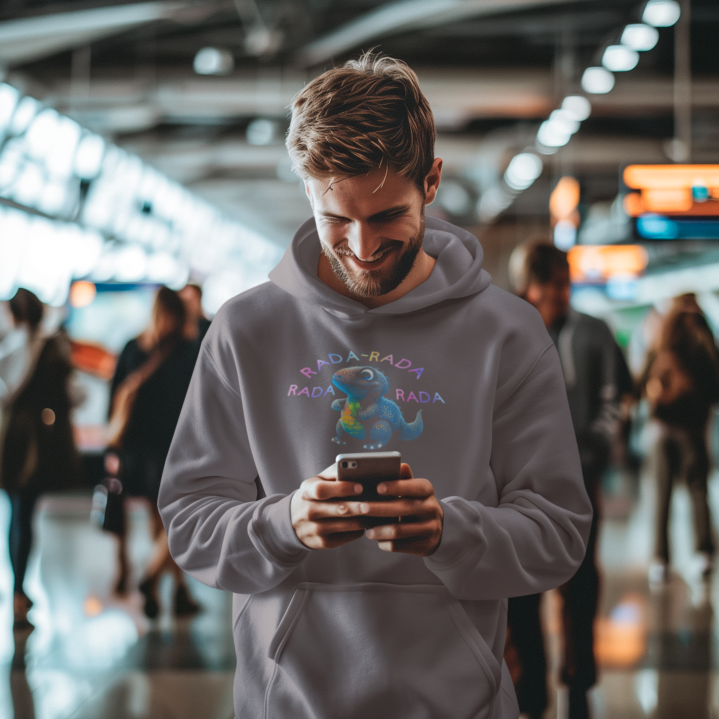 Elevate your casual wardrobe with the adorable RADA-RADA dinosaur hoodie, featuring a fun and playful design perfect for everyday wear. Made from a heavy blend Gildan hoodie, this customizable piece offers both comfort and style.